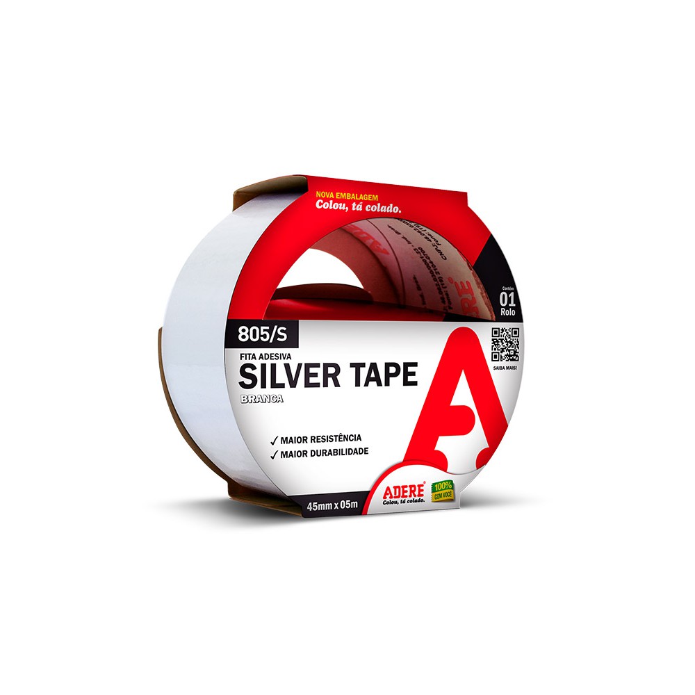 Fita Silver Tape Multiuso 5 e 10 Metros Alta Resistência 48mm Preta Prata Branca Amarela Verde Vermelha ADELBRAS