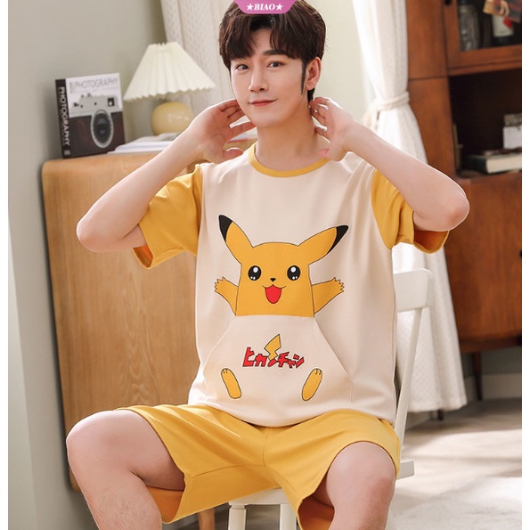 Desenho Animado De Verão Pokemon Pikachu Impressão Pijamas Casual Calças Curtas Conjuntos Listrados Homens Moda Caseira