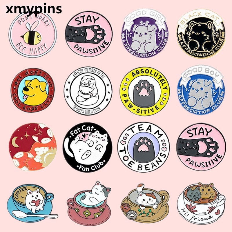 Desenho Animado Cachorro Gato Esmalte Animais Pés De Pata Gatinho Impressão Broches Raposa Lapela Crachás Moda Chapéu Decoração Presente