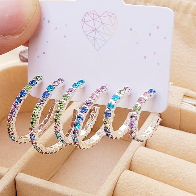 KIT Brincos Feminino de Argolinhas com Strass Folheados a Ouro 18k e Prata 925 Brincos Feminino