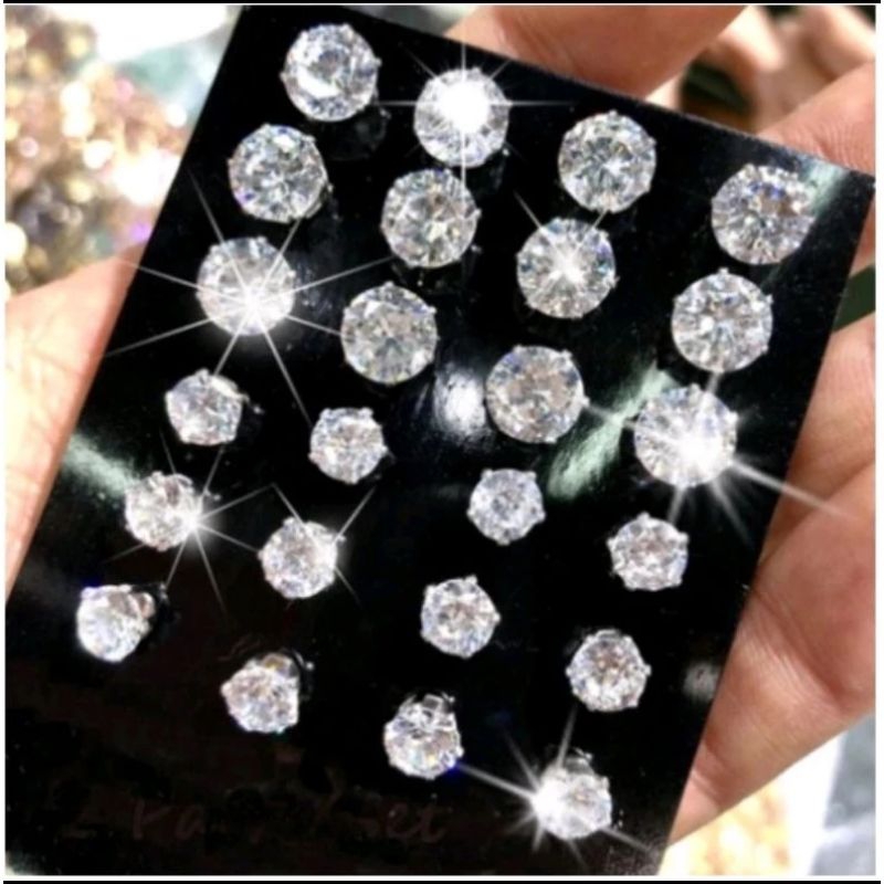Brincos De Aço Inox Pedra Zircônia Cartela Com 6 Pares, Ou kit Com 4 cartelas Tamanhos Diferente Masculino e Feminino
