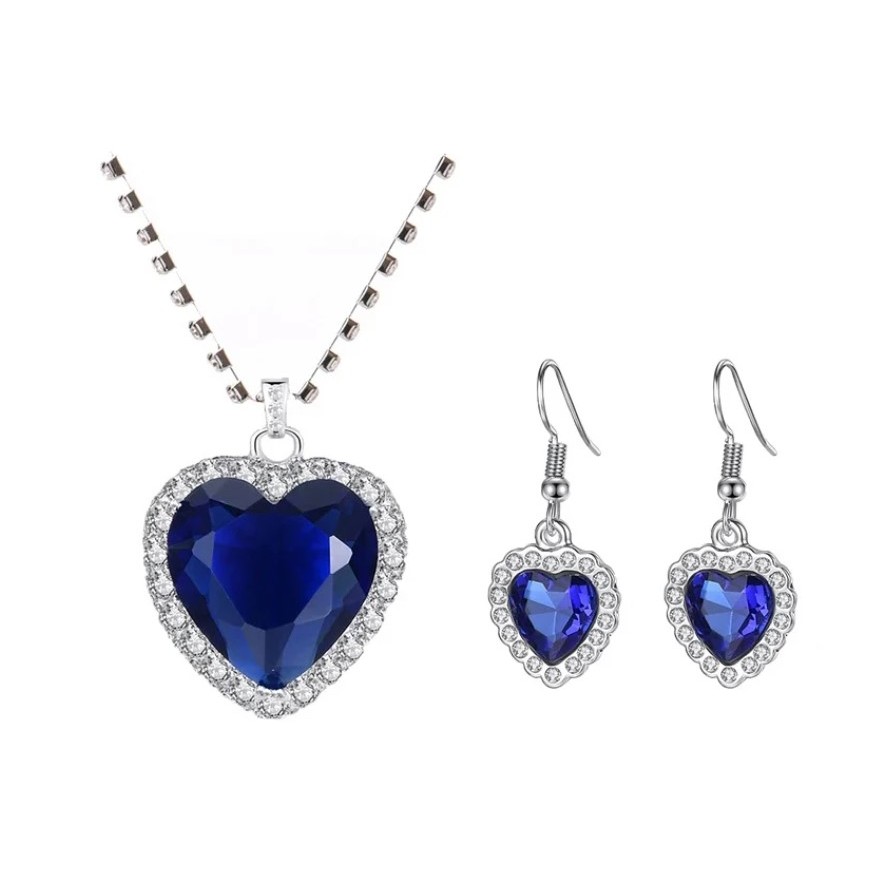 Kit Colar E Brincos Titanic Com Embalagem De Veludo Coração Oceano Presente