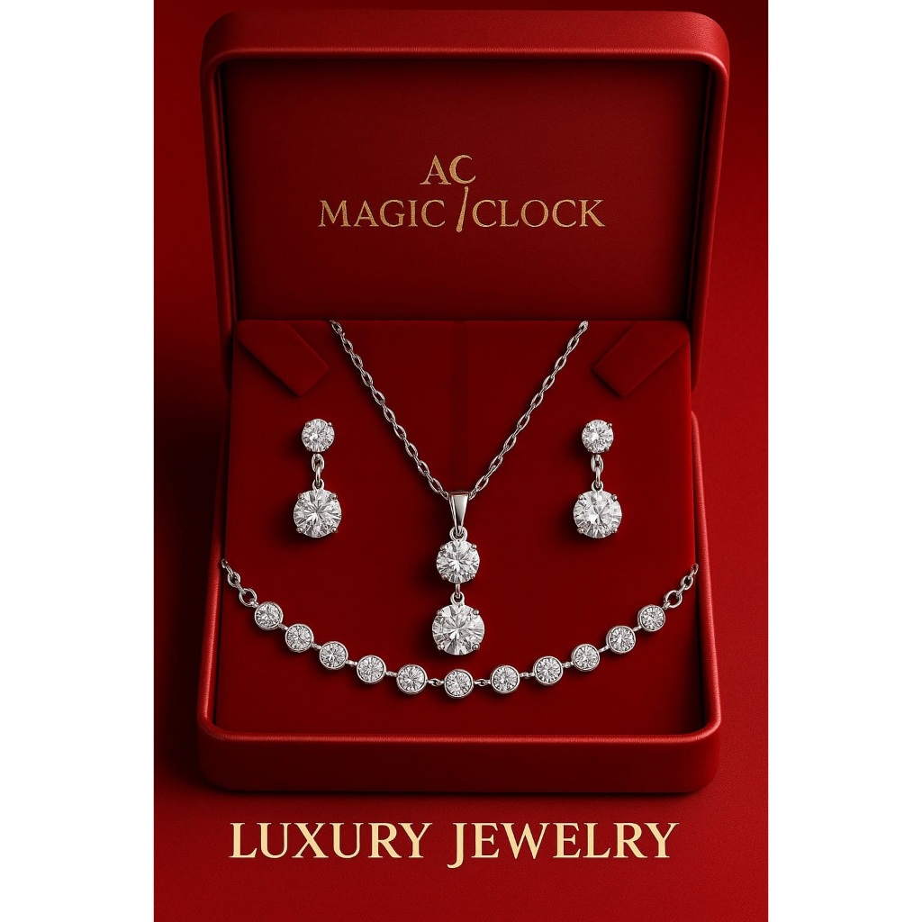 Kit Presente Feminino Luxo com Colar, Pulseira e Brincos - Aço Inoxidável Prateado