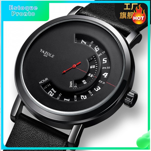 Yazole Relógio Masculino À Prova D 'Água Luminoso Com Pulseira De Couro