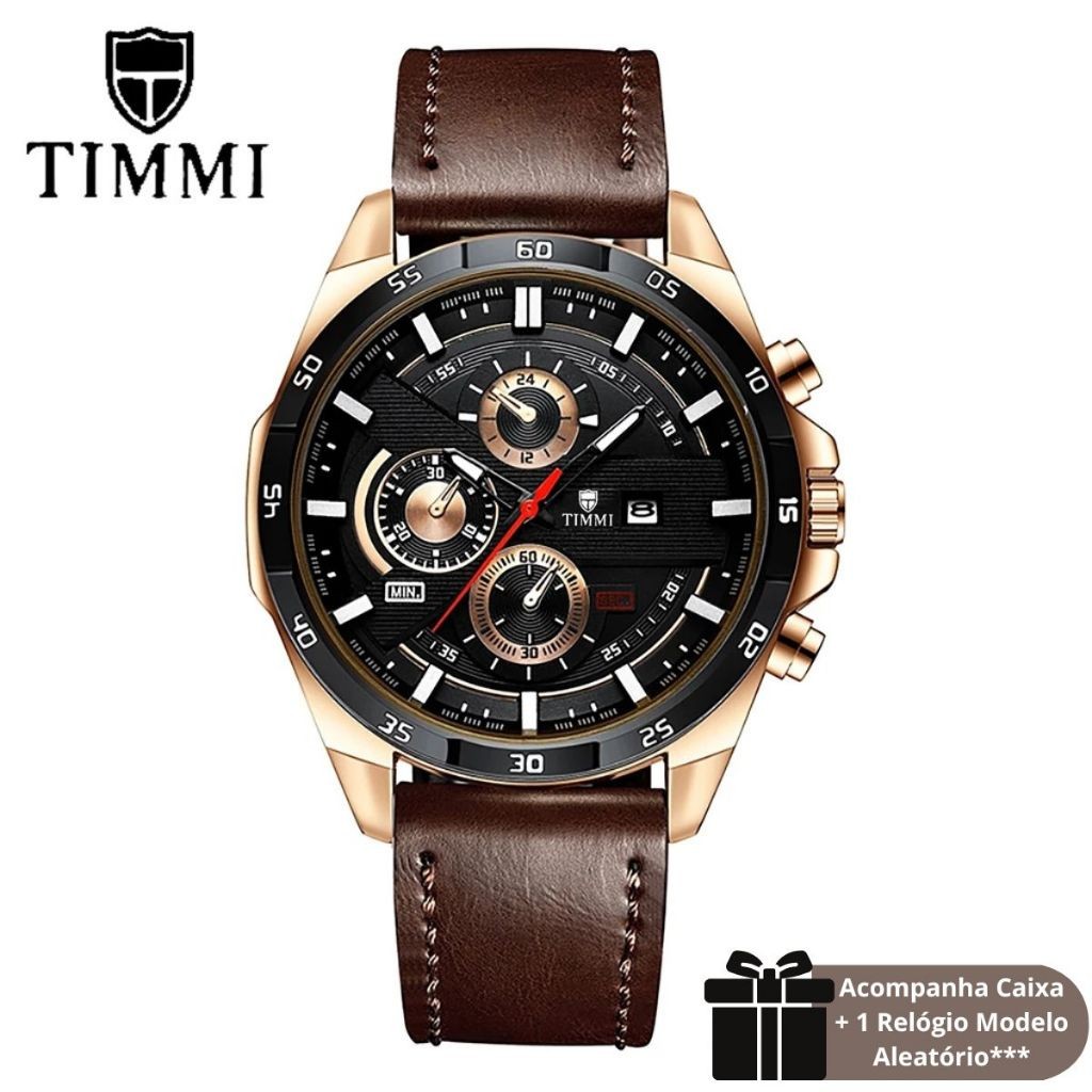 TIMMI Relógio Masculino Esportivo de Quartzo com Calendário Resistente a Água Relógio Masculino com Pulseira de Couro