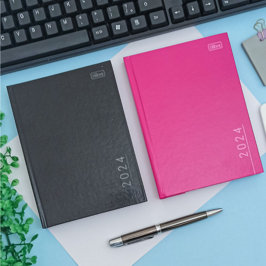 Agenda 2024 Diária Pepper Básica Colorida 12,3 cm x 16,6 cm - Tilibra | Papelaria | Material Escolar | Agenda Colorida Rosa ou Preta | Material de Escritório