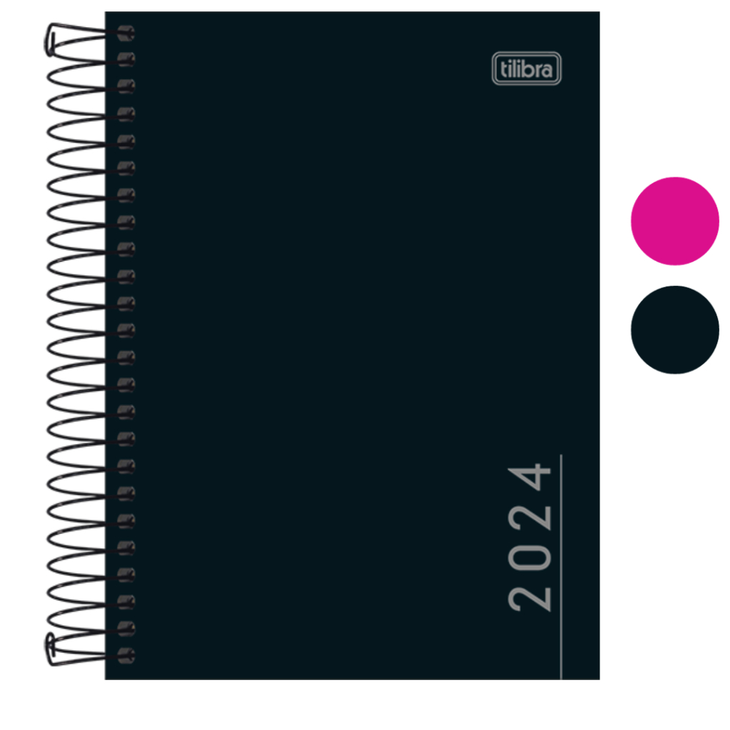 Agenda Diária 2024 Espiral Tilibra Pepper 160 folhas 11,7 x 16,4 Rosa ou Preta