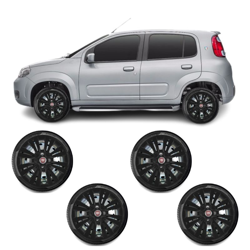 Jogo 4 calotas Fiat aro 14 Preto Fosco, Uno Palio Siena Cubo alto