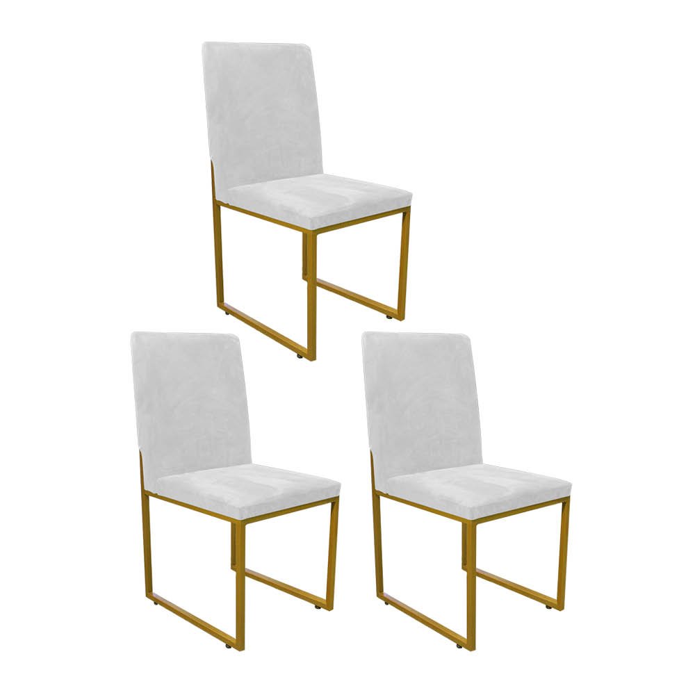 Kit 03 Cadeira de Jantar Office Sttan Industrial Escritório Sala Ferro Dourado Sintético Branco - Ahz Móveis