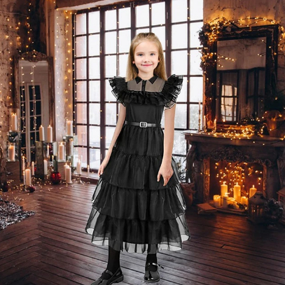 Vestido Infantil Fantasia Vestidos de Princesa Estilo Addams Com Cinto Roupa infantil menina De Festa Carnaval - Promoção - - MOSTRA
