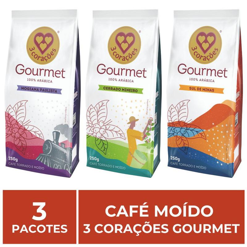 Café 3 Corações Gourmet 100% Arábica - Torrado e Moído - Embalagem de 250 g Escolha o Sabor
