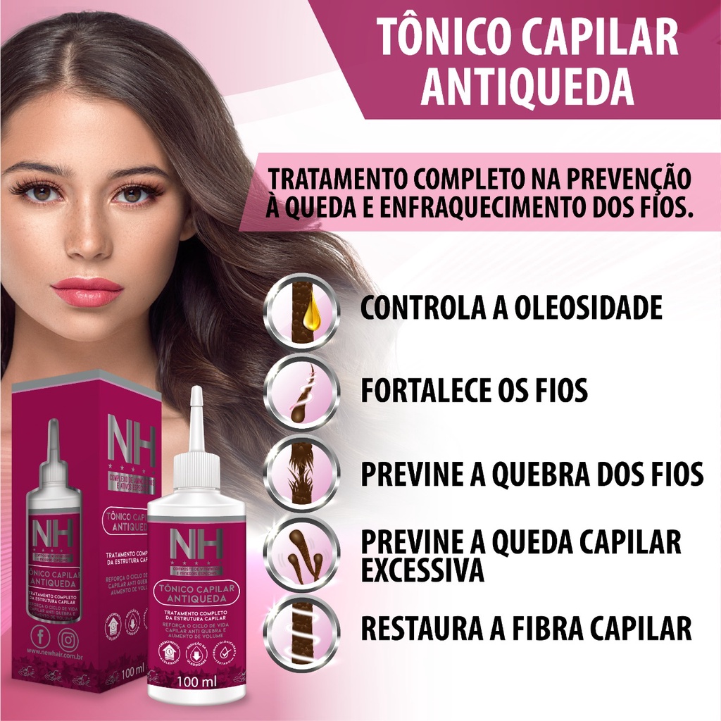 Tônico Capilar ANTIQUEDA 100mL NEW HAIR NH - Crescimento capilar - Fortalecedor - previne a quebra dos fios - controle de oleosidade - restaura a fibra
