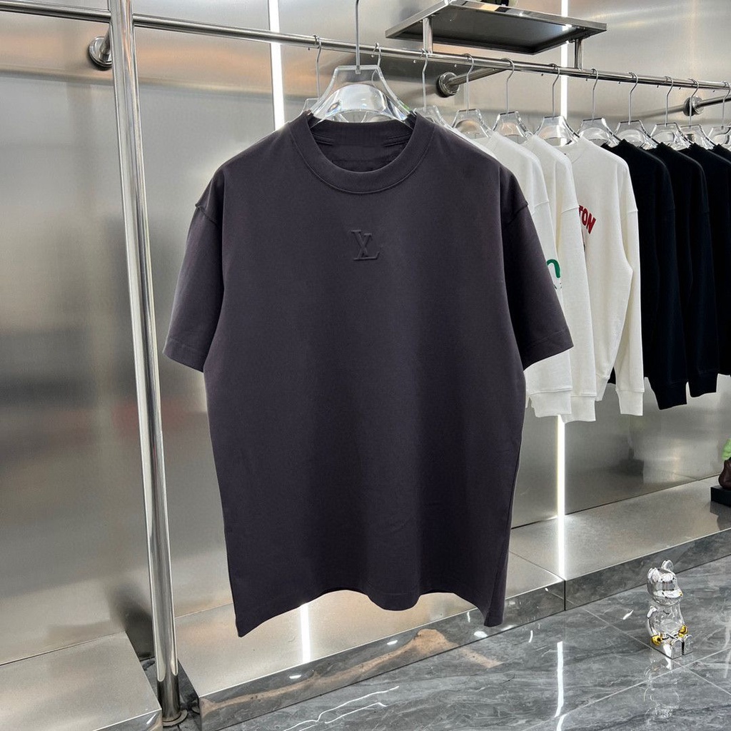 Louis Vuitton2024 gola redonda letras de mangas curtas roupas masculinas de verão novo sportswear casual solto fundo respirável camiseta de meia manga