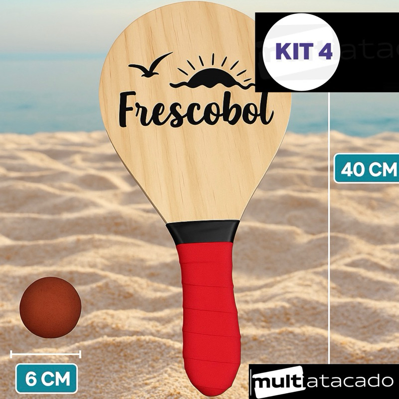 Kit 4 Jogo Frescobol Tênis De Praia 2 Raquetes Madeira + Bola kit Frescobol com raquetes e bolinha
