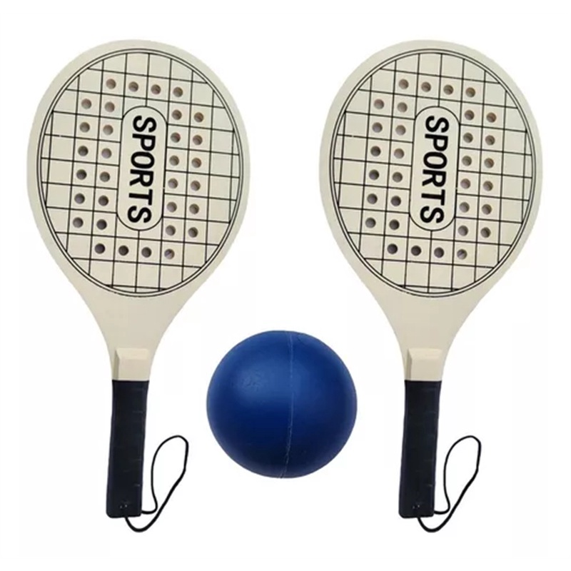 Kit Jogo Frescobol Tênis De Praia 2 Raquetes Madeira + Bola