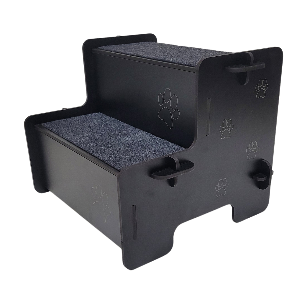 Escada Pet Cachorro Gato Mdf Preta 2 Degraus 33cm de Altura com Carpete