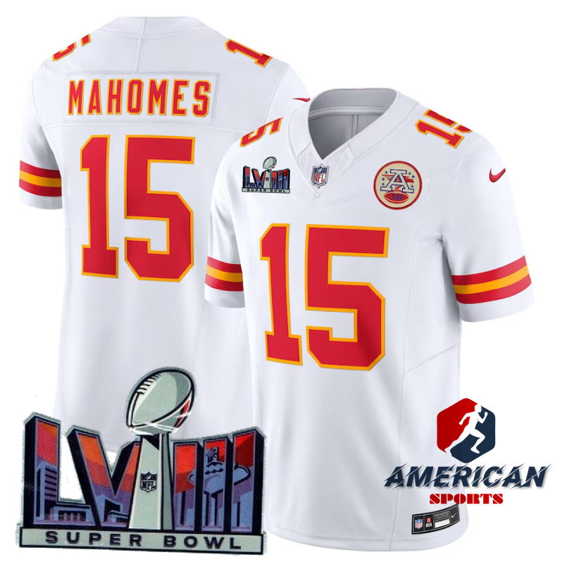 Camiseta NFL 2024 Nova 3ª Geração Kansas City Chiefs Patrick Mahomes #15 branco Camisa de Futebol Americano Jersey 2023NFL jerseys