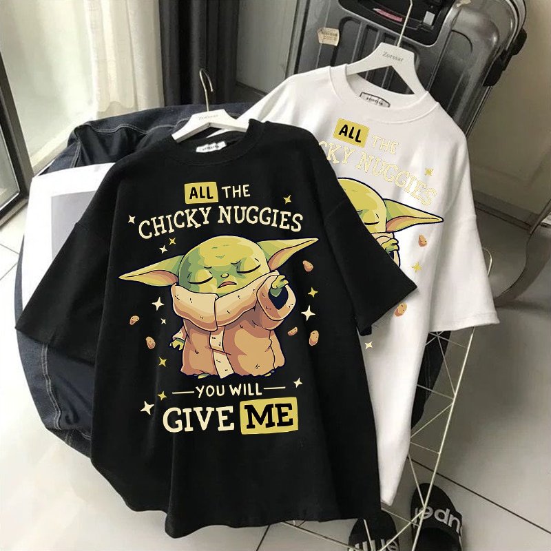 Disney Chic Fashion Cute Mandalorian Baby Yoda Cartoon Impressão Camiseta Casal Unissex Manga Curta Top 9 Cores