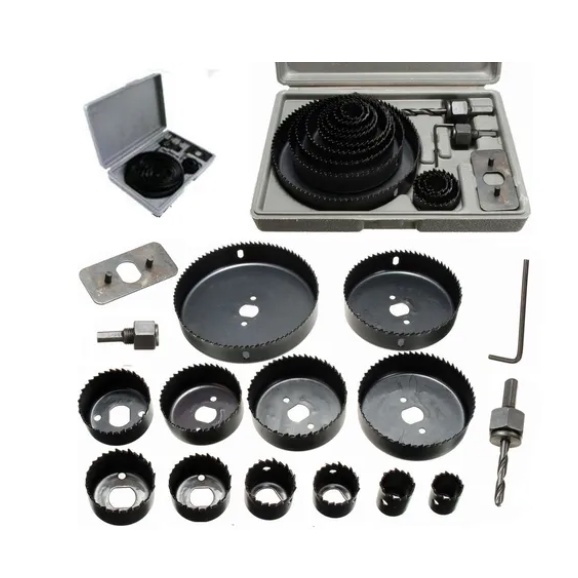 Kit Jogo Serra Copo para Madeira de 16 Peças 19 á 127mm Gesso Plástico PVC Marceneiro Profissional