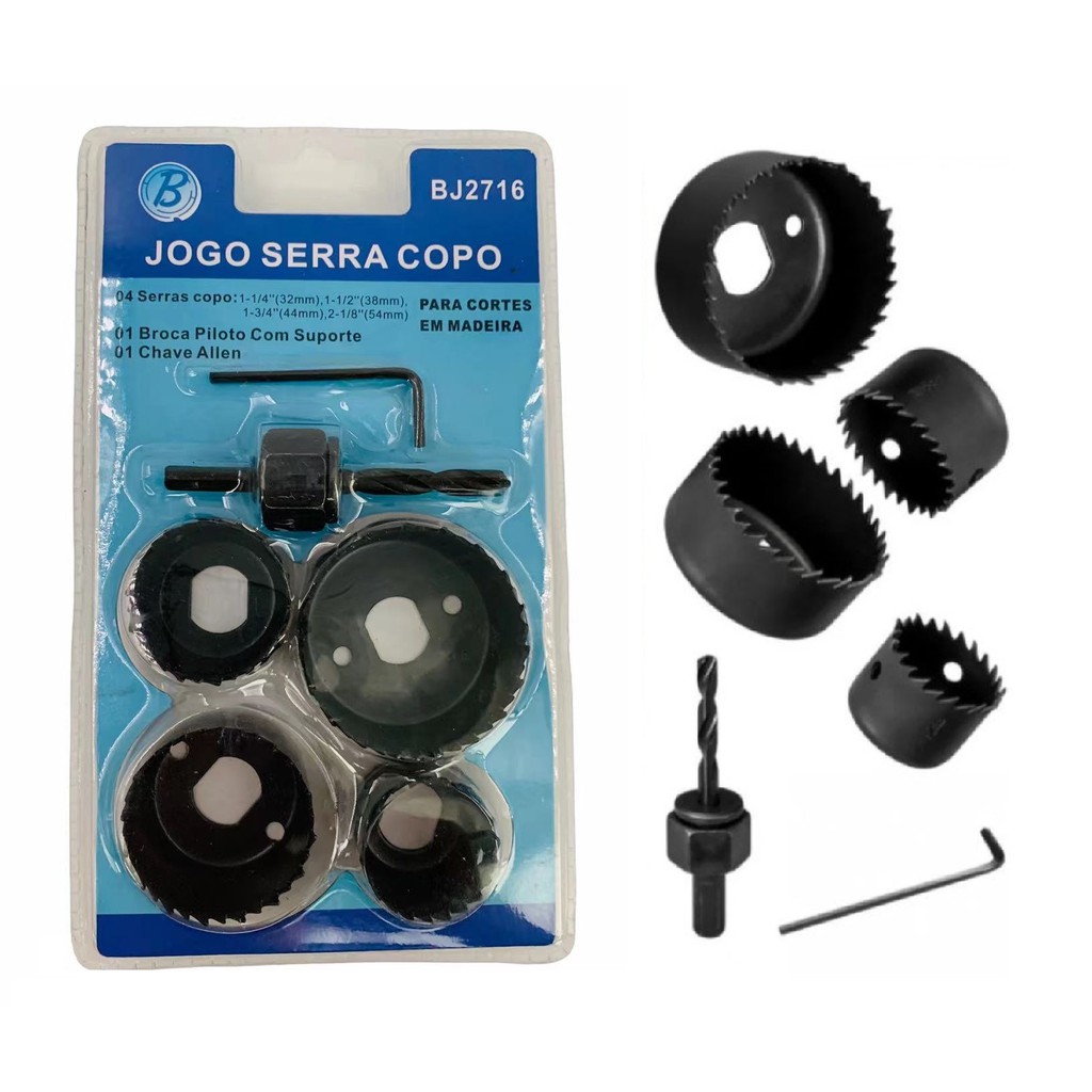 Jogo de Serra Copo Profissional Para Furadeira 6 Peças em Aço Madeira Gesso PVC Plástico MDF