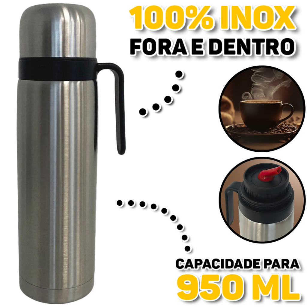 Garrafa Térmica 850ml De Aço Inox Para Água Café Suco Chá Conversa Líquido Frio E Quente Com Alça E Parede Dupla