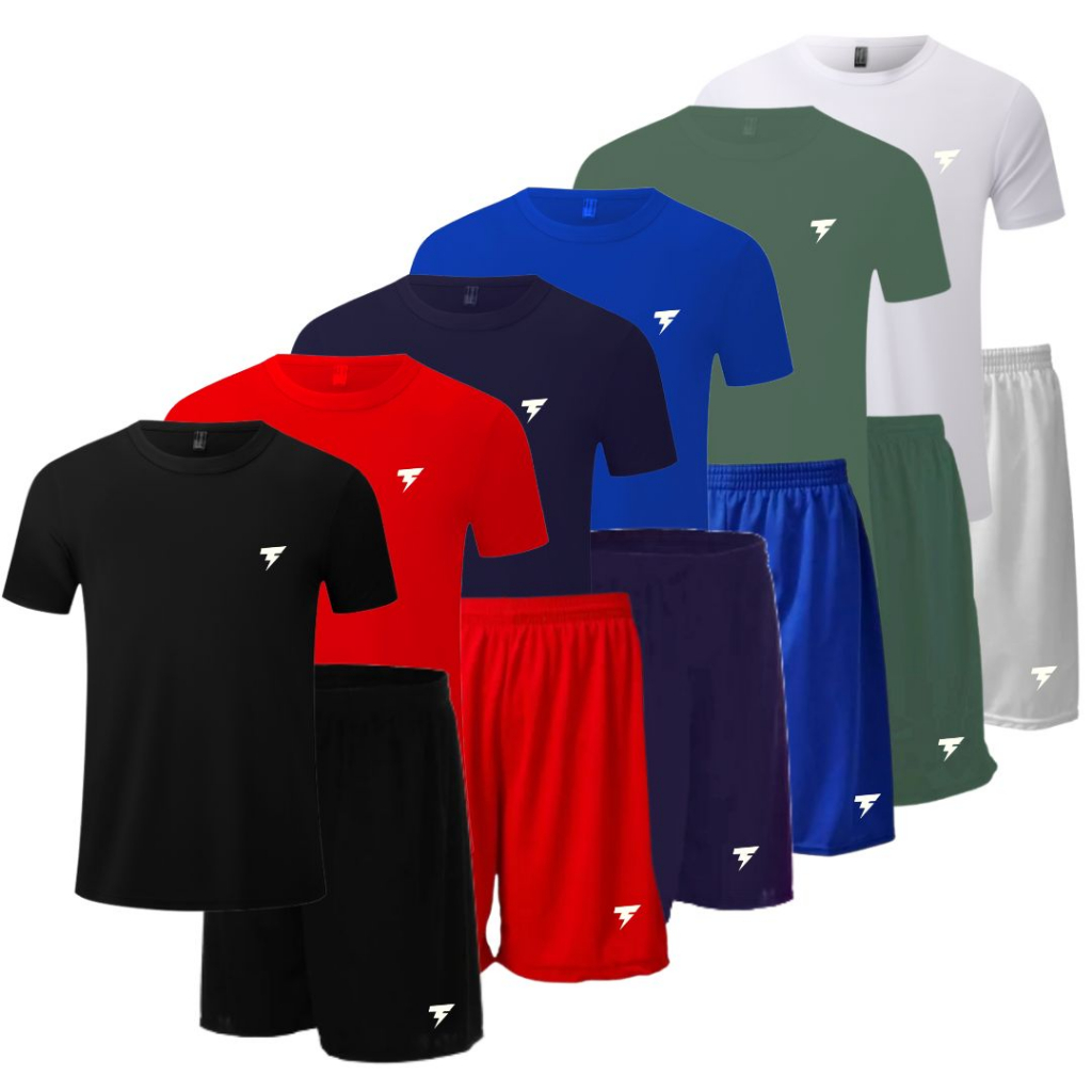 Conjunto Camisa Básica Manga Curta e Bermuda Dry Fit Logo Refletivo Diversas Cores