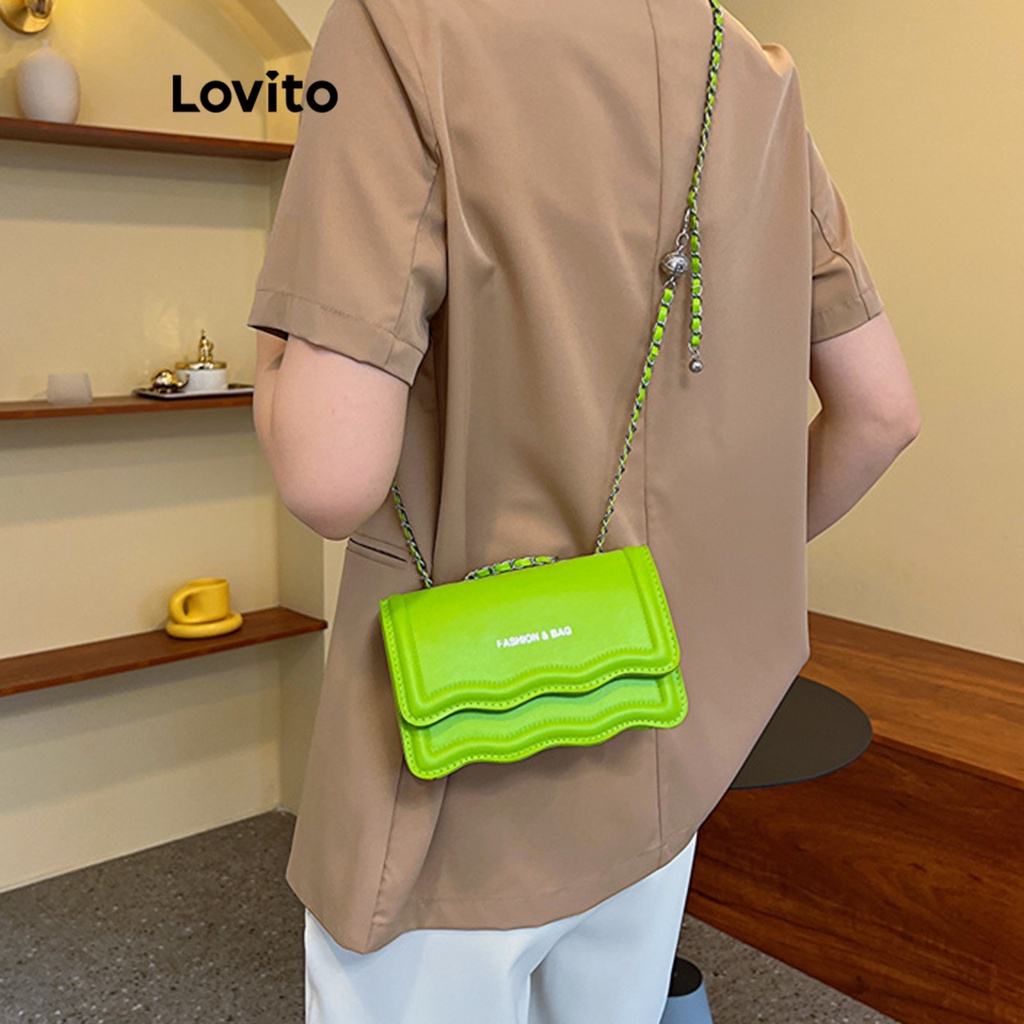 Lovito Bolsa De Ombro Pequena Básica Simples Casual Para Mulheres LNA32161 (Branco/Verde/Preto)
