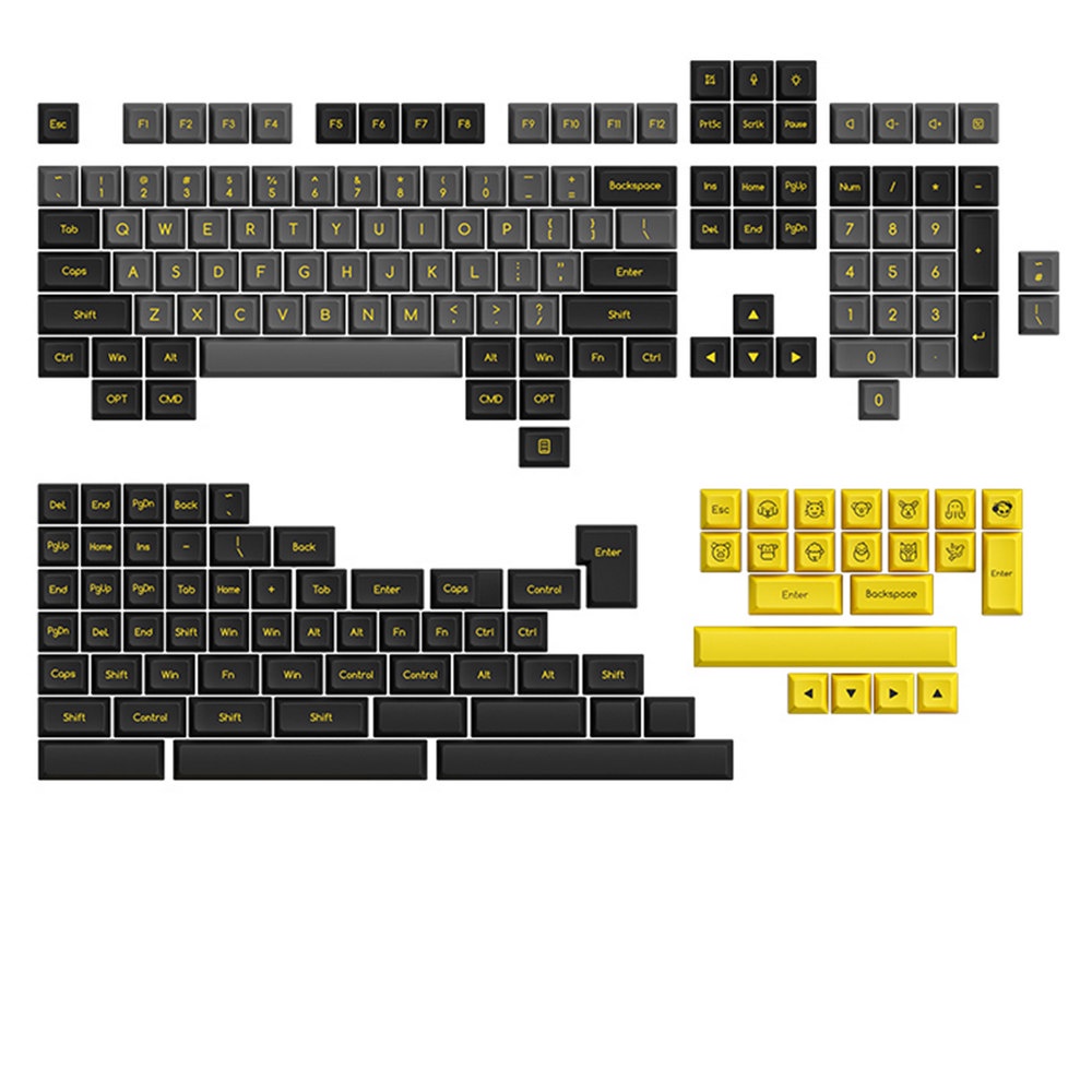 Kit de Keycaps Universal Akko Black & Gold, Perfil SAL, PBT Double-Shot, 195 keycaps, ANSI / ISO / JIS / ABNT2