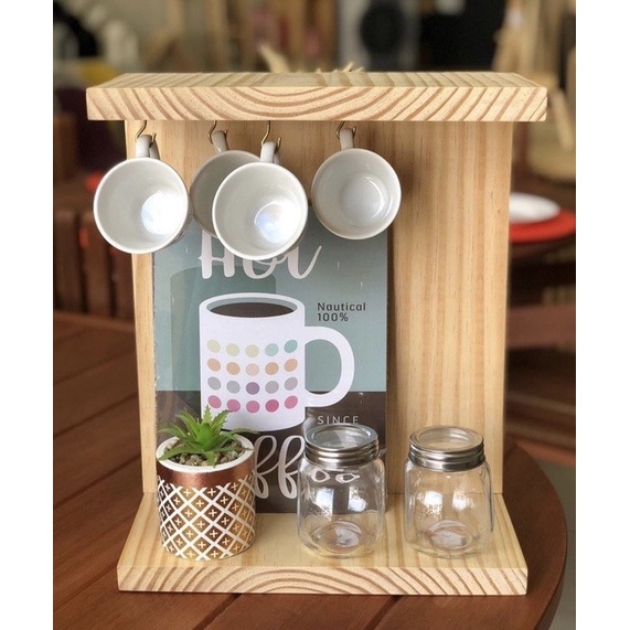 Porta xicaras e pires com 4 ganchos Chá Café Suporte e organizador de xicaras Cantinho do café