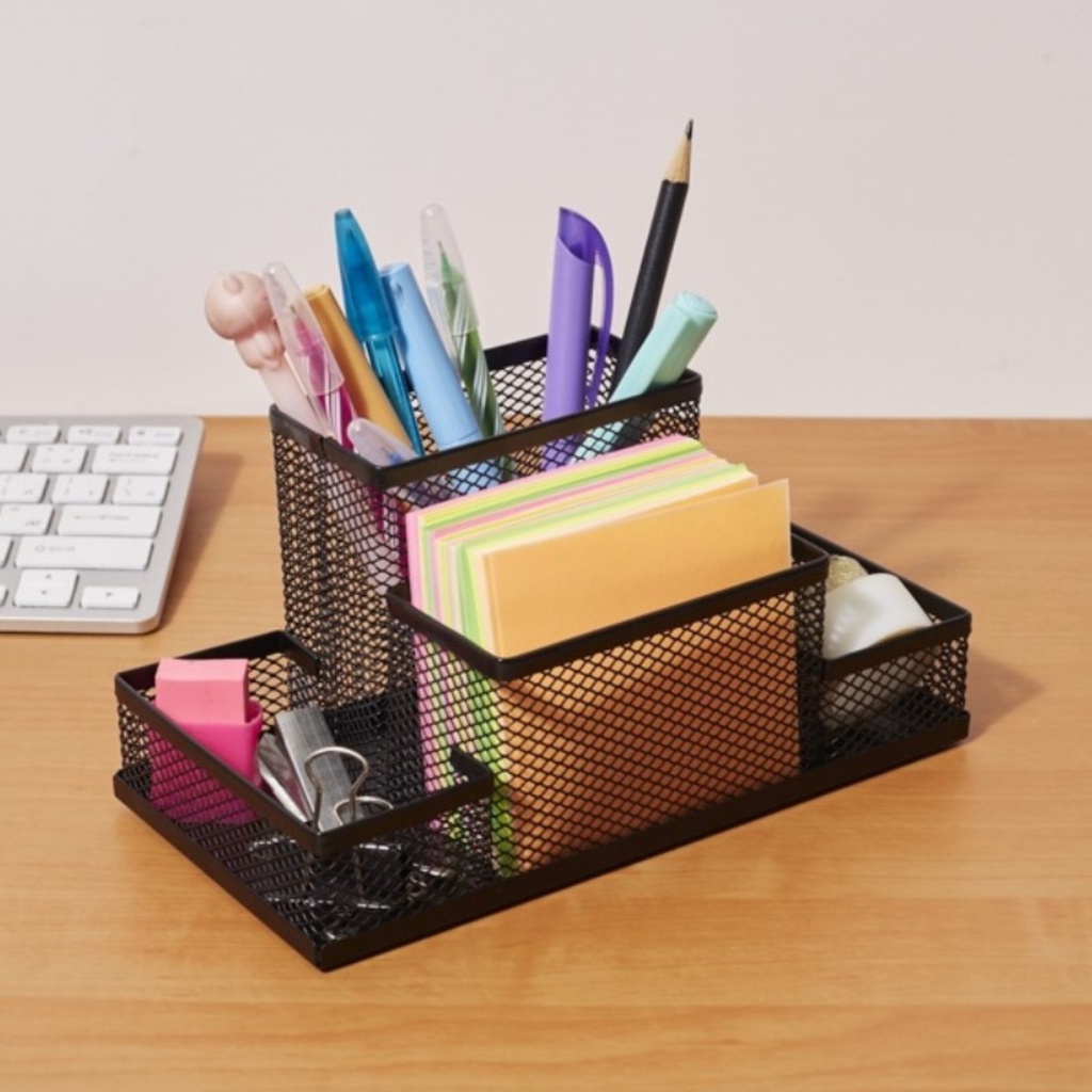 Organizador de Mesa Porta Caneta Multiuso Lápis Nicho de Escritório Com 4 Divisórias