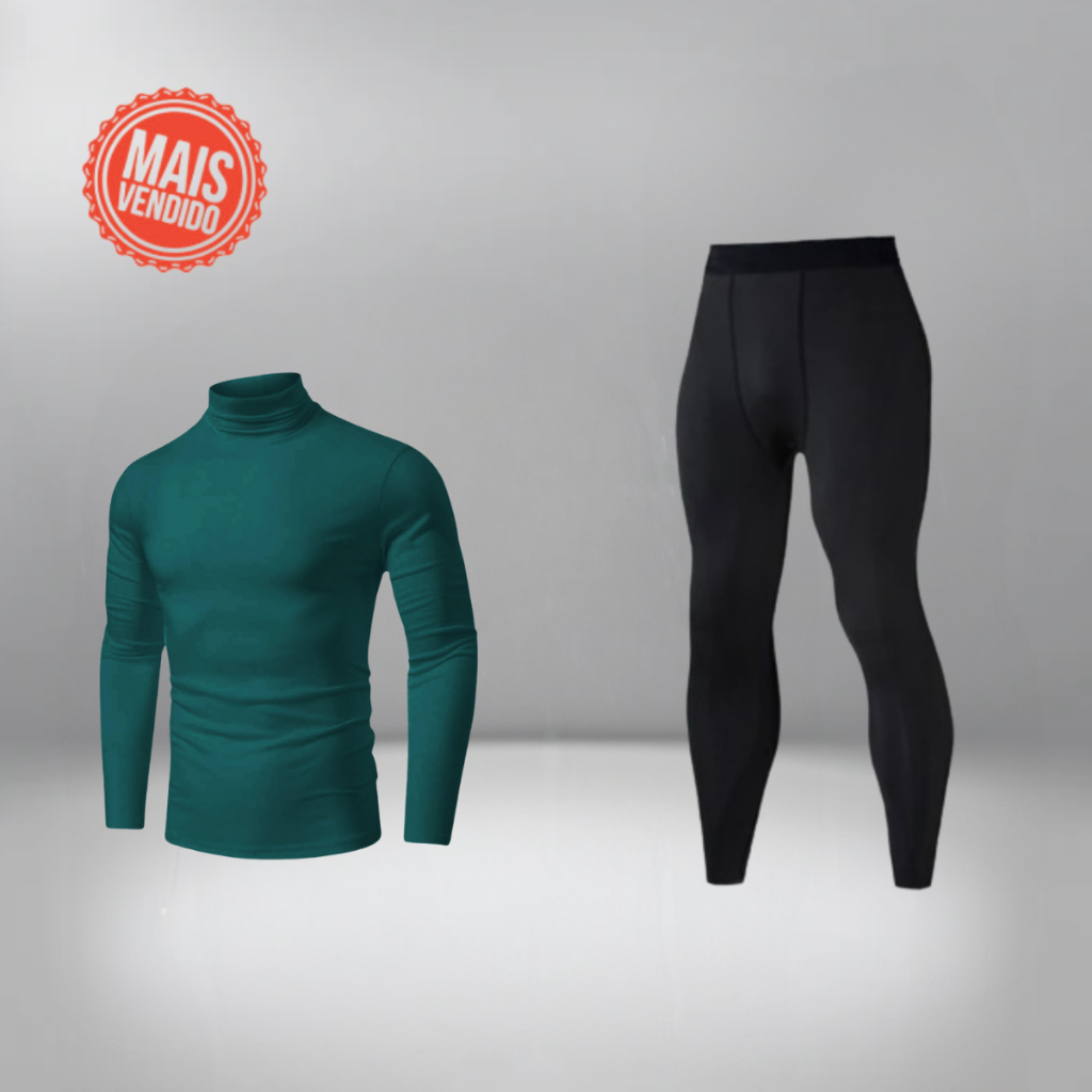 Kit Calça Térmica e Camisa Térmica Masculina Manga Longa Gola Alta Segunda Pele Conjunto Para Treino
