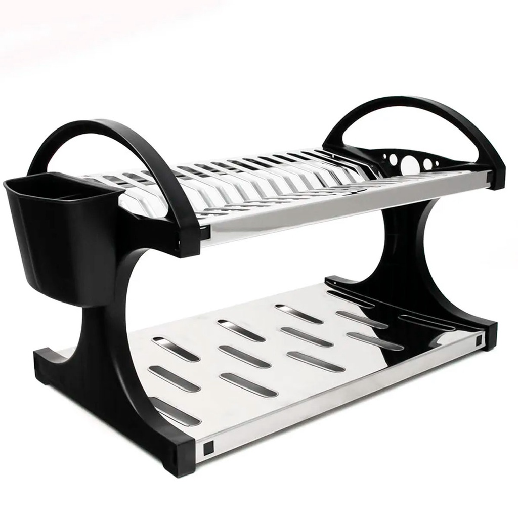 Escorredor Secador De Louça 2 Andares Montado Em Aço Inox 16 Pratos E Bandeja Coletora