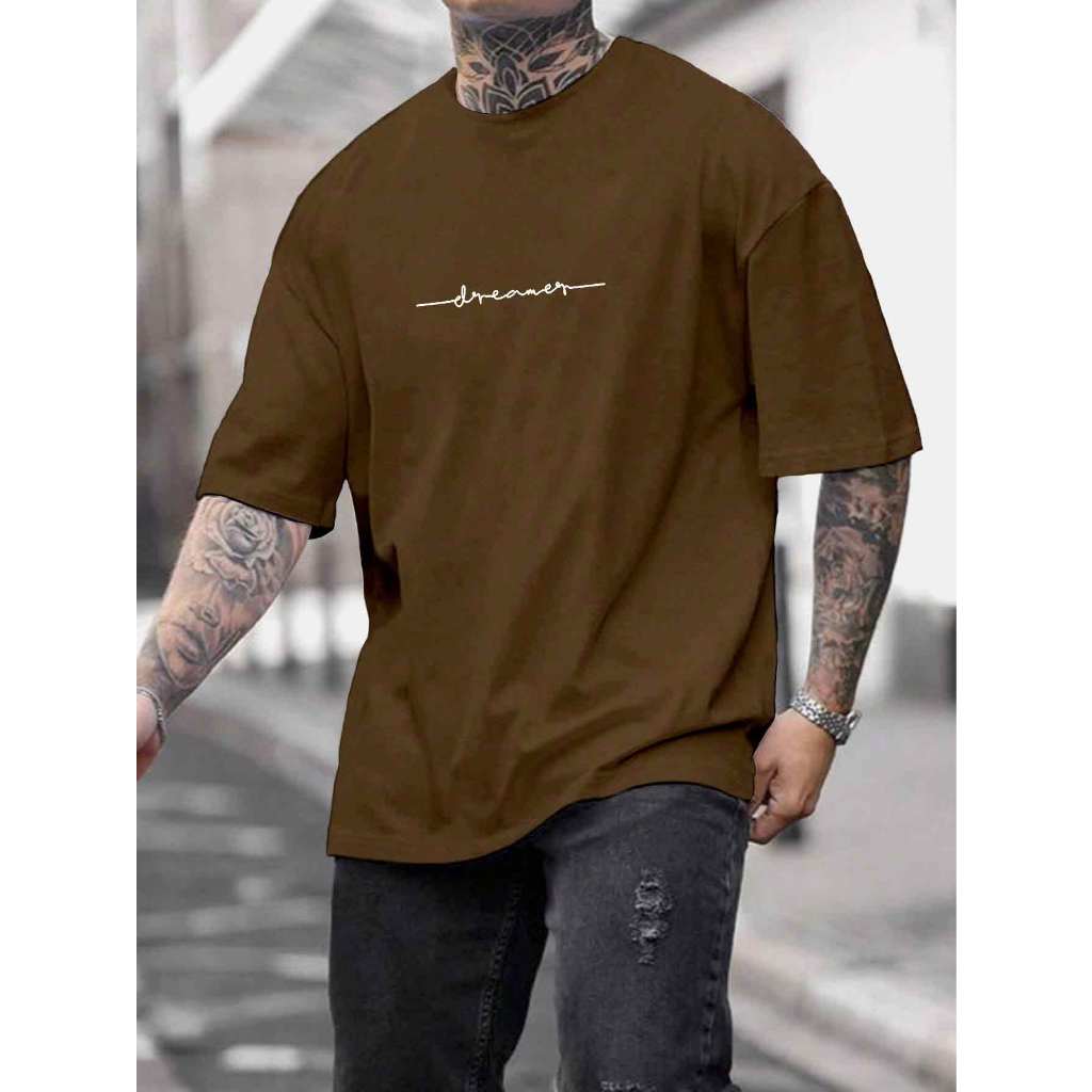 Camiseta Oversized Masculina Estilo Swag Minimalista Camisa Simples Blusa T-Shirt Streetwear Básica Personalizada Estampa Silk Bordado Frase Dreamer Sonho Sonhador Costas Lisa