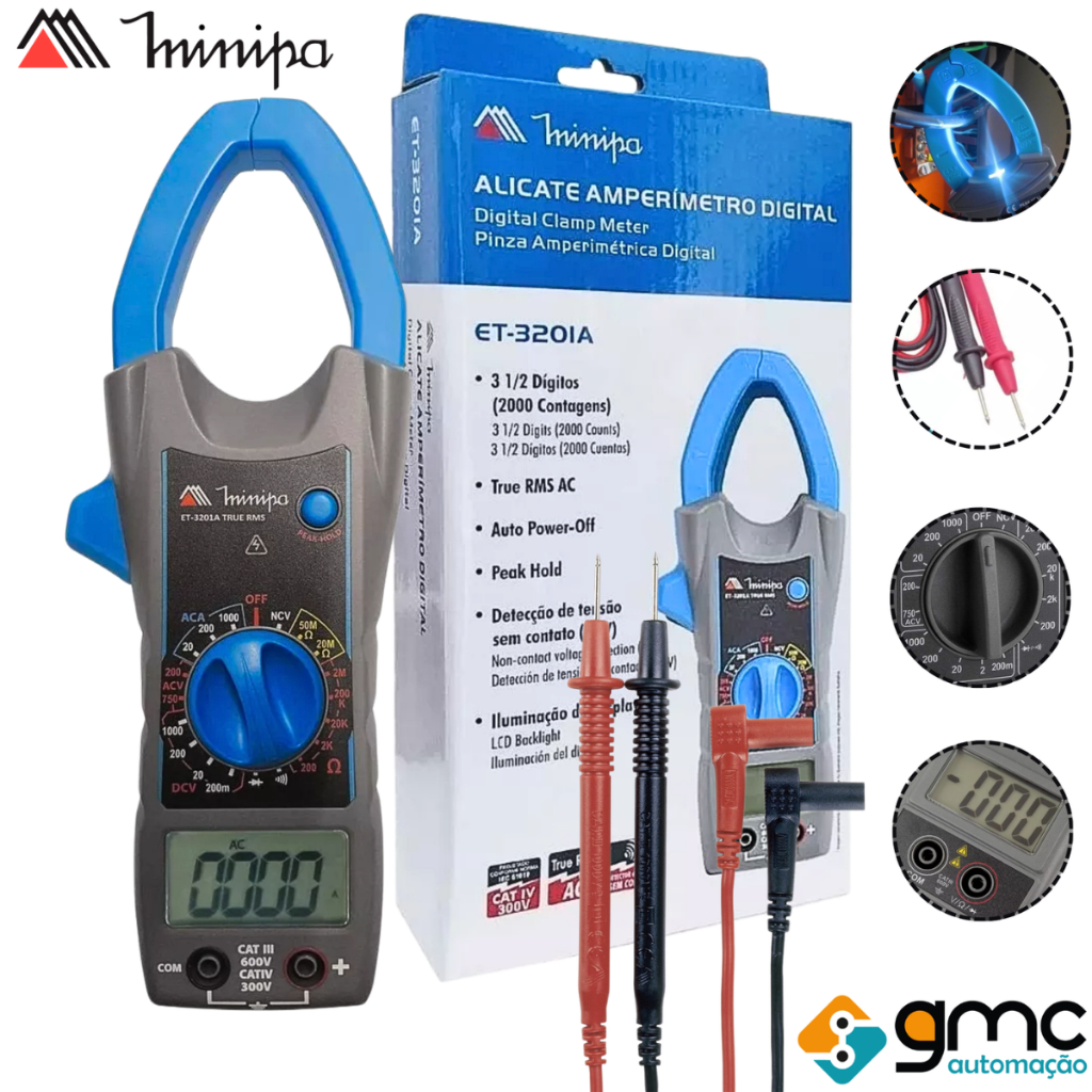 Alicate Amperímetro Multímetro Digital 1000a Cat Iv True Rms 300v Et-3201a Minipa