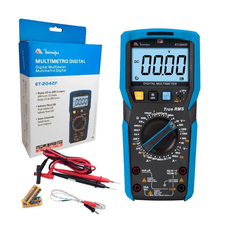 Multímetro Digital MINIPA ET-2042F LCD True RMS AC CATIII 600v