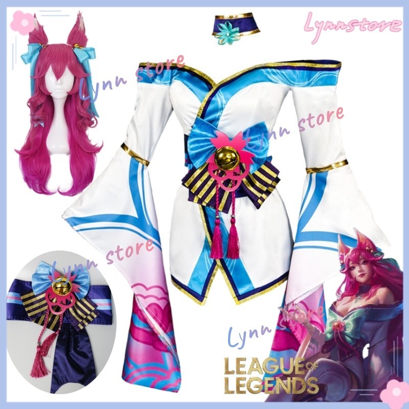 Spirit Blossom Ahri Cosplay Costume Wig League of Legends Jogo Traje De Carnaval Anime Festa Vestido Completo