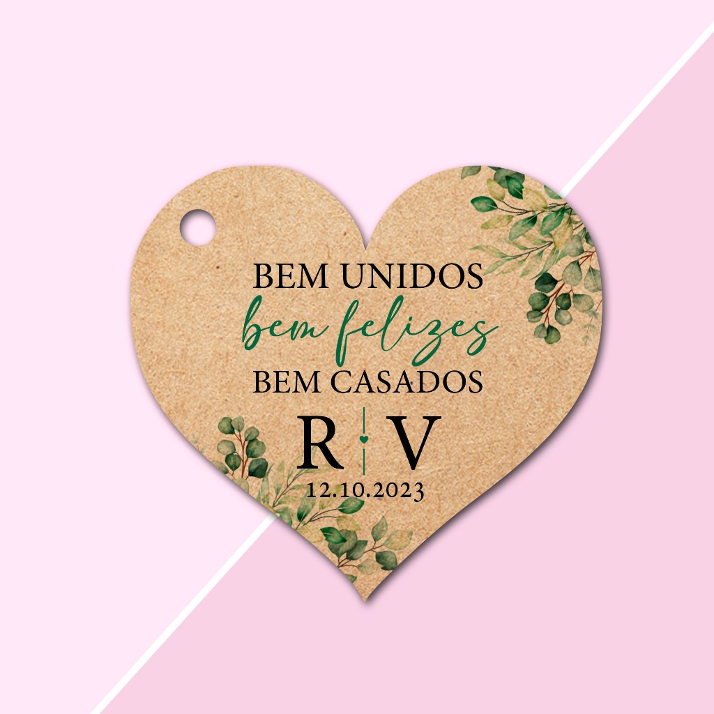 Mini Tags Kraft Formato Coração tamanho 3,5X3,2CM Lembrancinha para Casamento, Noivado e Chá de Cozinha