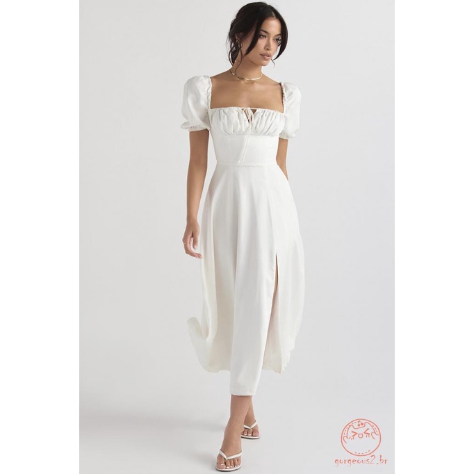 Gorgeous-Women's Summer Solid Color Cor Sólida De Verão Manga Curta Pescoço Quadrado Festa De Gravata Vestido Longo
