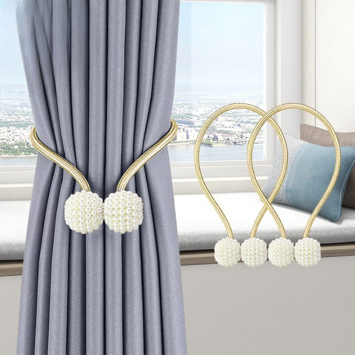 Kit 2 Peças Ímã Cinto De Cortina De Tecido Corda Imitação De Pérolas Fivela Livre De Volta Clipe