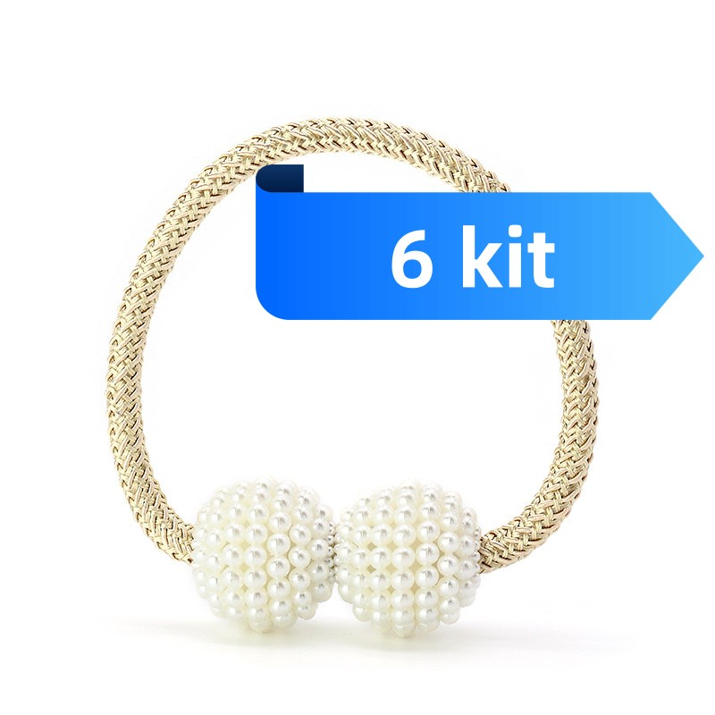 Kit 6 Langsir Ímã Cinto De Cortina De Tecido Corda Imitação De Pérolas Fivela Soco Livre De Volta Clipe