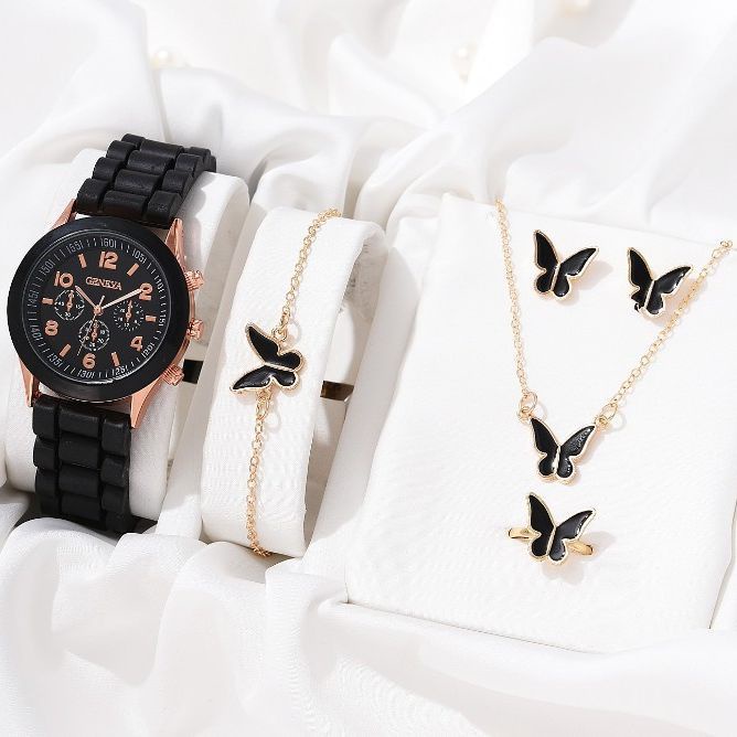 Pulseira de Moda Brincos Brincos Colar de Anel Conjunto Novo Estilo Senhoras Relógio Branco Preto Presente Doando Dia dos Namorados