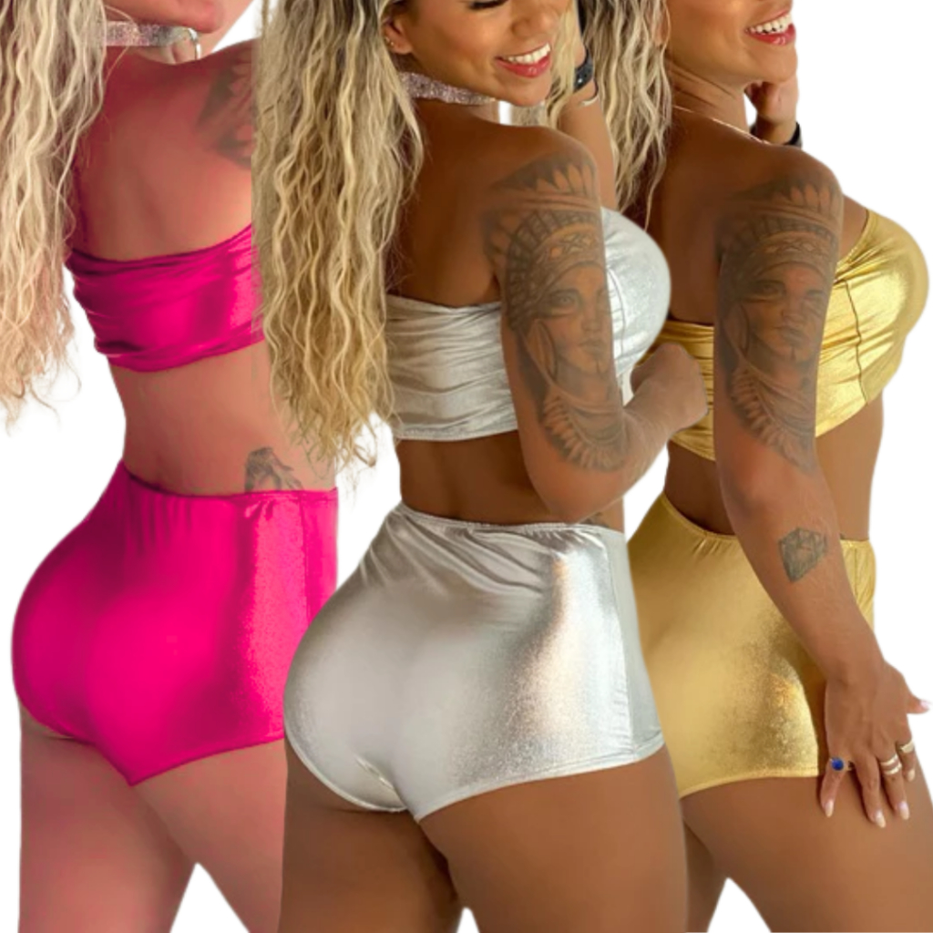 Conjunto Feminino Hot Pants Conjunto Festa Metalizado Carnaval Verão