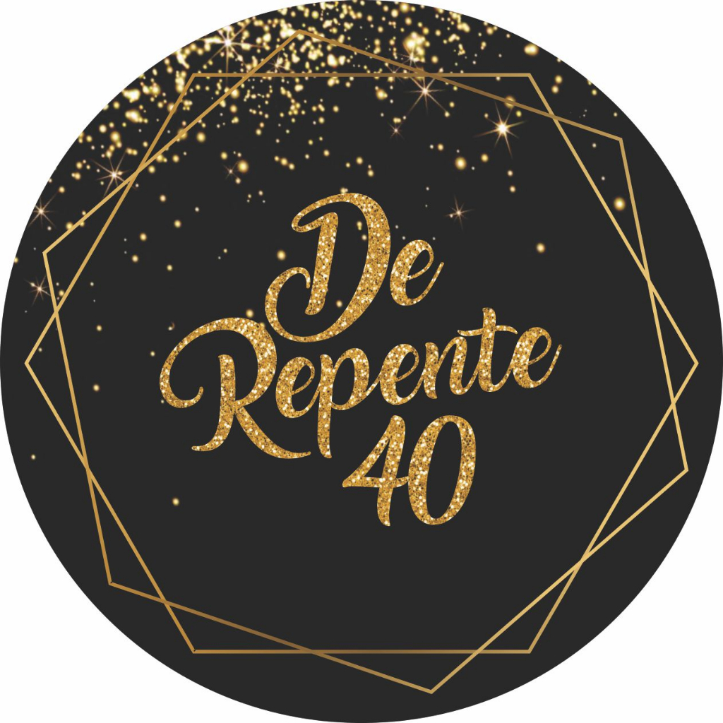 Painel em lona Redondo Decoração de Festa - De Repente 40 Dourado
