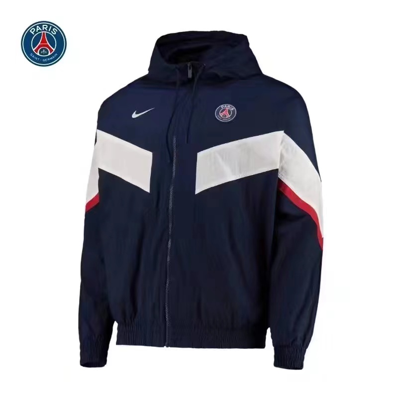 222-23 Novo Estilo Paris Saint-Germain Sapphire Blue (Branco) PSG Camisa De Futebol Com Capuz Quebra-Ventos Casaco Esportivo Respirável De Outono Inverno Messi Neimar Jersey