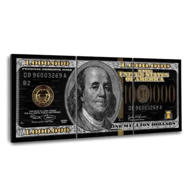Quadros Mosaicos Decorativos Kit 3 peças 20x30 Para Sua Sala Quarto Ou Cozinha Arte moderna nota de 1 milhão de dolares