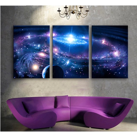 Quadros Mosaicos Decorativos Kit 3 peças grande 1,28x0,60 Para Sua Sala Quarto Ou Cozinha Arte Moderna retratando galáxia