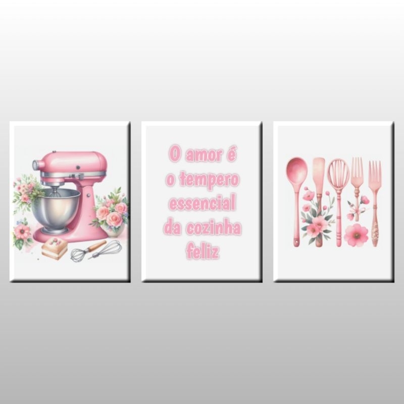 Kit 3 quadros decorativos para cozinha rosa - modelo 3