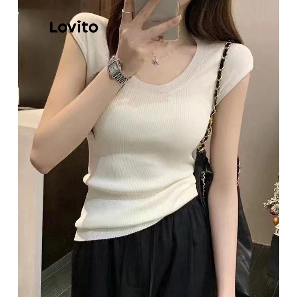 Lovito Top Casual De Malha Básica Lisa Para Mulheres LNE44104