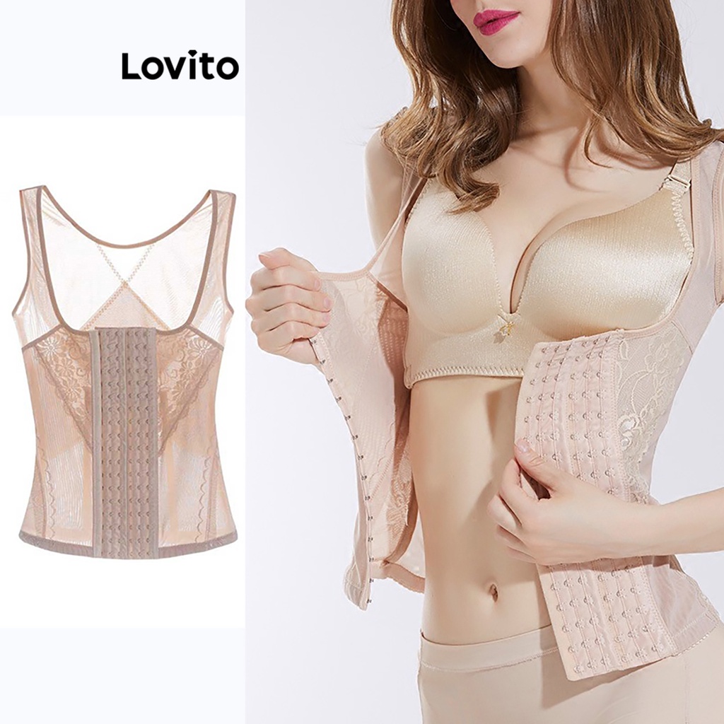 Lovito Shapewear De Malha Casual Com Fivela Lisa E Contraste Para Mulheres LNE31253 (Damasco)