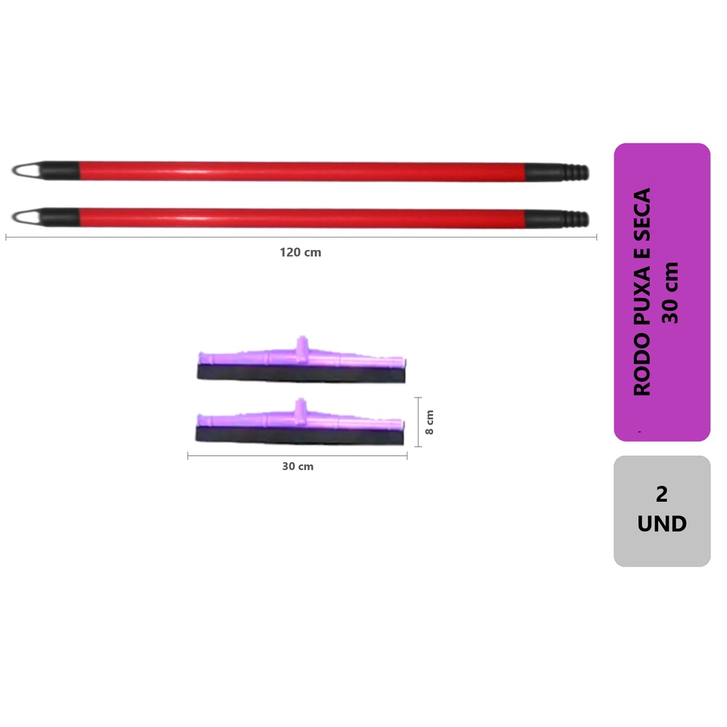 Kit 2 - Rodo Puxa E Seca 30 Cm Reforçado Qualidade - Com Cabo